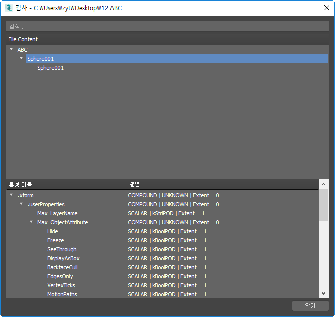 주: 3ds Max에서는 Alembic 파일에서 파티클 시스템을 가져오지 않습니다.