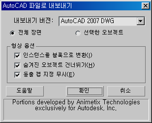 주: AutoCAD 2010으로 내보내는 경우