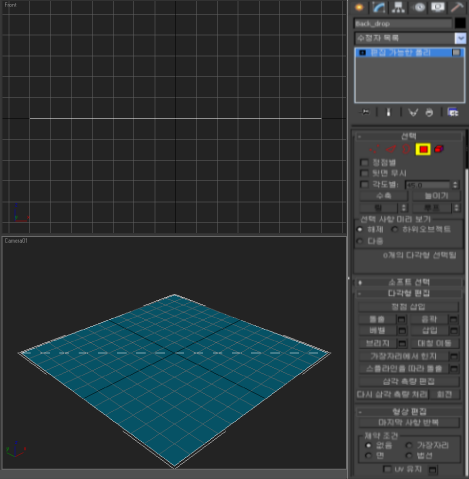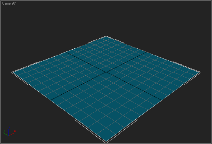 다음 이미지에서는 "삼각 측량 편집" 도구를 사용하여 편집 가능한 폴리의 숨겨진 가장자리를 회전했습니다. Plane01 오브젝트의 숨겨진 가장자리가 왼쪽에서 오른쪽으로 이어진 점선으로 표시됩니다. 그런 다음 이 장면이 FBX로 내보내집니다.