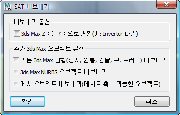 기본적으로 이 대화상자의 모든 옵션은 해제되어 있으므로 몸체 오브젝트만 내보내지며 내보낸 장면은 3ds Max 장면과 동일한 좌표계를 사용합니다. 이러한 옵션을 사용하여 좌표계를 Autodesk Inventor와 같은 대상 응용 프로그램으로 조정하고 장면의 다른 오브젝트를 출력할 수 있습니다.