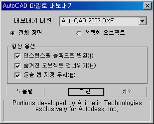 이러한 옵션은 DWG 내보내기에 대한 옵션과 동일합니다.