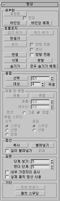 이 롤아웃의 컨트롤에 대한 자세한 내용은 선택 롤아웃(편집 가능한 패치)을 참조하십시오.