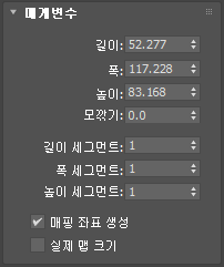 길이 세그먼트, 폭 세그먼트 및 높이 세그먼트 필드가 모두 1(기본값)로 설정되어 있는지 확인합니다.