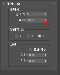 3. 늘이기 수정자의 매개변수 롤아웃에서 확대 값을 –30으로 변경합니다.