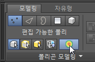 장면에서 편집 가능한 다각형 오브젝트가 선택되어 있지 않으므로 대부분의 리본 도구는 비활성 상태입니다.