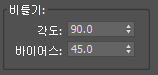비틀기 그룹에서 각도를 90.0으로 설정하고 바이어스를 45.0으로 설정합니다.