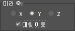 미러 축 그룹에서 Y 옵션을 선택하고 대칭 이동을 켭니다.