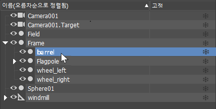 잠시 후 프레임이라는 툴팁이 나타납니다. 이 툴팁은 선택 도구가 프레임 오브젝트 위에 있음을 나타냅니다. 이 장면에서 프레임은 포탄의 상위 오브젝트이므로 프레임이 이동하면 포탄 어셈블리의 나머지 부분도 함께 이동합니다.