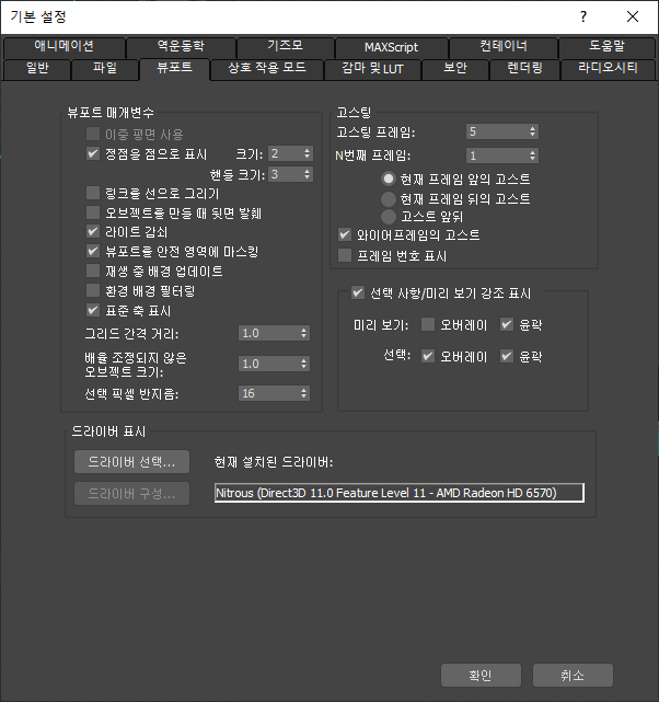 고스팅을 표시하여 뷰포트의 애니메이션 표시 개선: