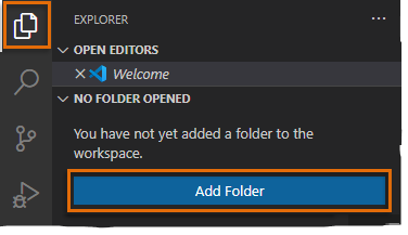 1. In Visual Studio Code, on the Activity Bar, click Explorer and then click Add Folder (or click File menu > Add Folder to Workspace).
