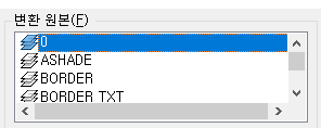 현재 도면의 도면층에서 변환할 수 있는 도면층을 나열합니다.