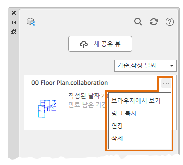자세히 메뉴에서 공유 뷰를 관리합니다.
