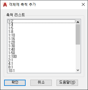 선택한 주석 객체에 추가될 수 있는 축척 리스트를 표시합니다.