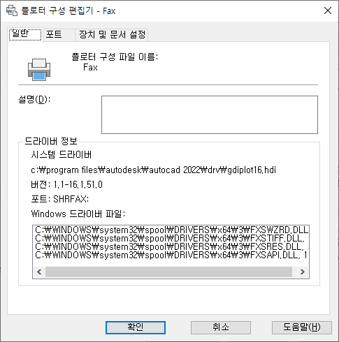 플로터 구성(PC3) 파일에 대한 기본 정보가 들어 있습니다.