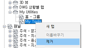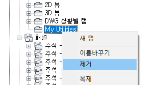 경고: 리본 탭에서 리본 패널 제거를 명령 취소할 수 있는 방법은 없습니다. 잘못된 리본 패널을 제거한 경우 취소를 클릭하여 사용자 인터페이스 사용자화(CUI) 편집기를 닫고 수행한 변경 사항을 저장하지 않습니다. 이렇게 하면 수행한 다른 모든 변경 사항도 명령 취소됩니다.
