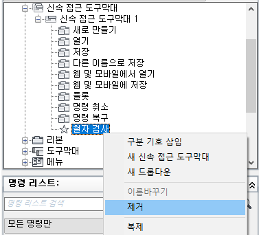 명령 또는 컨트롤 제거(CUI 편집기)