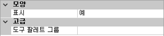 도구막대의 특성 변경