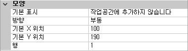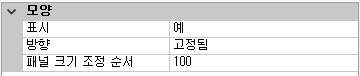 - 특성 창의 모양, 표시 상자에서 드롭다운 리스트를 클릭하고 예를 선택합니다.
