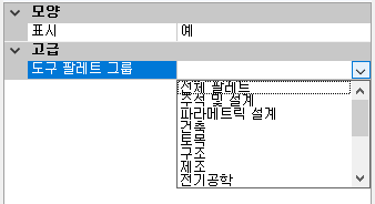 - 도구 팔레트 그룹 상자에서 나열된 도구 팔레트 그룹 중 하나를 선택하여 리본 탭과 연관시킵니다.