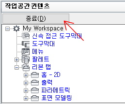 - 작업공간 컨텐츠 창에서 종료를 클릭합니다.