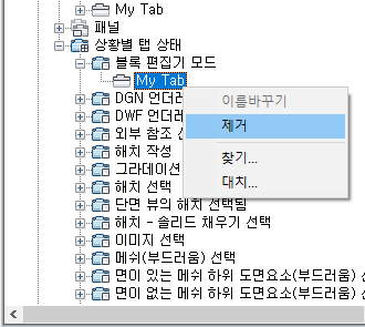 상황별 탭 상태에서 리본 탭 제거