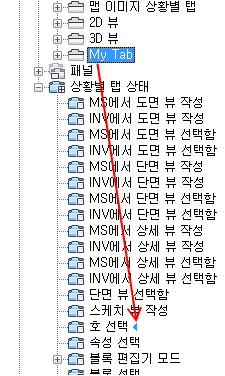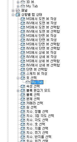 4. 리본 탭을 탭 노드에서 리본 상황별 탭 상태로 끕니다.