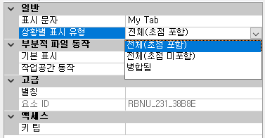 5. 특성 창의 상황별 표시 유형 상자에서 전체 또는 병합됨을 선택합니다.
