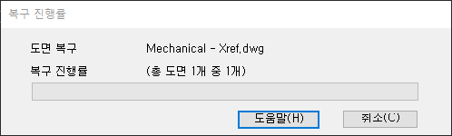 복구 진행률 메시지 상자가 표시되고 도면에 부착된 외부 참조 파일에 대한 감사 진행률을 알려줍니다.