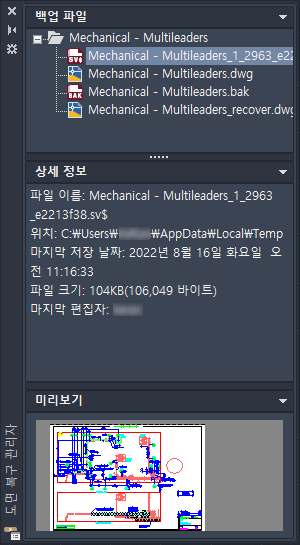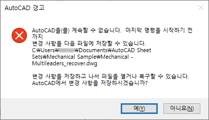 다음 단계에서는 도면 파일을 복구하는 방법에 대해 설명합니다.