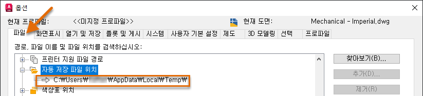 다음 단계에서는 도면에서 작업할 때 BAK 및 SV$ 파일의 작성을 제어하는 옵션 대화상자에서 도면 백업 및 자동 저장 기능 설정을 변경하는 방법에 대해 설명합니다.