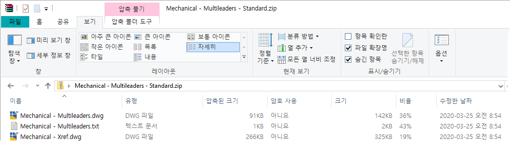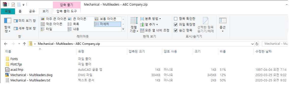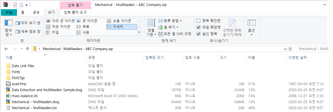 폴더에서 ZIP 파일을 작성하거나 폴더에 도면 및 지원 파일 복사