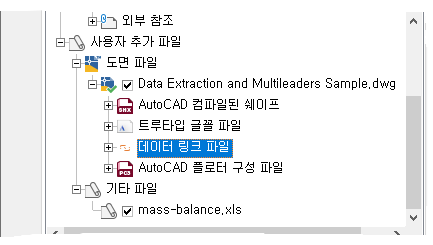 Ctrl 키를 누른 상태에서 Data Extraction and Multileaders Sample.dwg 및 mass-balance.xls 파일을 선택합니다. 열기를 클릭합니다.