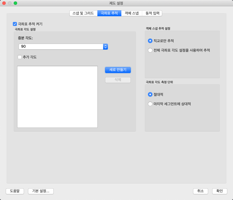 극좌표 추적 정렬 각도가 측정되는 기준을 설정합니다.