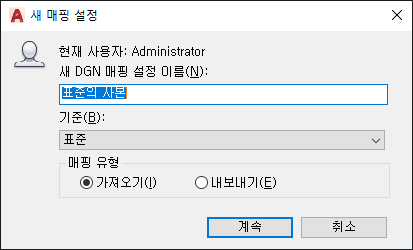 DGN 파일 가져오기 또는 내보내기를 위한 매핑을 설정합니다.