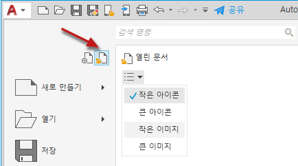 응용프로그램 메뉴의 최근 문서 리스트로 작업하려면