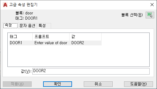 사용자의 좌표 입력 장치로 블록을 선택하는 동안 대화상자가 임시적으로 닫힙니다.