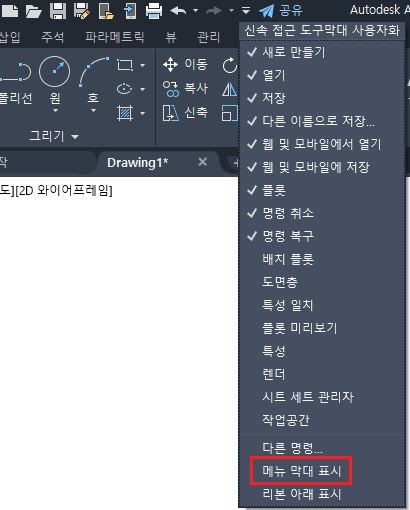 메뉴 막대 표시