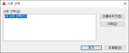 SHEETSET(명령) 찾기: 시트 선택 > > 관리