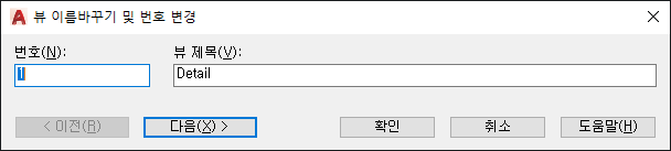 SHEETSET(명령) 찾기: 시트 뷰 탭 > 뷰를 마우스 오른쪽 버튼으로 클릭 > 이름 바꾸기 및 번호 변경