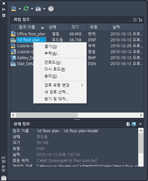 편집하기 위해 선택한 참조에 외부 참조나 블록 정의가 부착되어 있는 경우, 참조 편집 대화상자에 해당 참조 및 내포된 참조들이 표시되며 선택할 수 있습니다. 내포된 참조는 편집하기 위해 도면에서 선택한 객체가 내포된 참조의 일부인 경우에만 표시됩니다. 한 번에 하나의 참조만을 선택하여 편집할 수 있습니다. OLE 객체가 포함된 참조를 편집하는 경우, OLE 객체가 표시되지만 편집하기 위해 선택할 수는 없습니다.