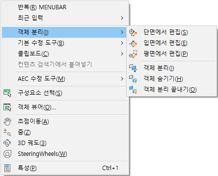 일반 도면 상황에 맞는 메뉴