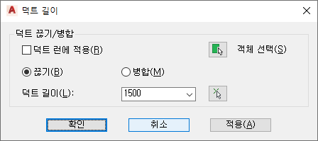 덕트 세그먼트를 끊거나 병합할 수 있습니다. 또한 덕트 세그먼트를 그리는 경우 자동으로 끊어지도록 선택할 수 있습니다.