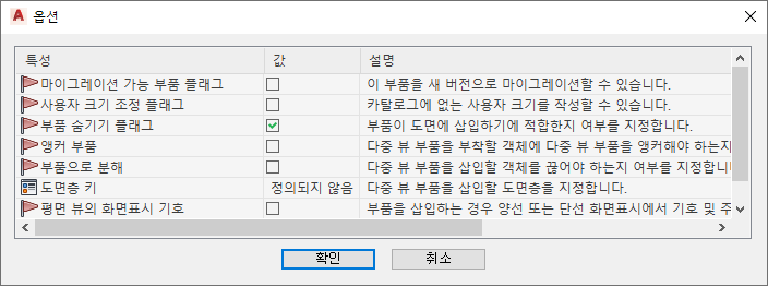 설정에 대한 설명은 파라메트릭 부품의 부품 삽입 동작을 참고하십시오.
