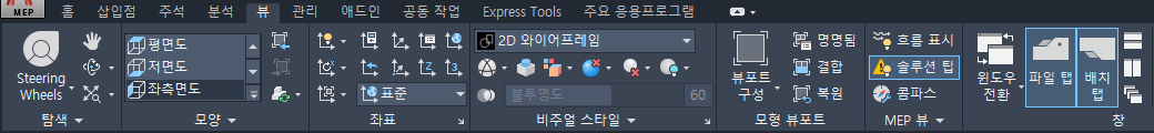 뷰 탭은 뷰를 정의 및 변경하고 도면을 탐색하는 중앙 위치입니다.