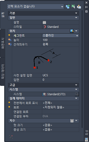 특성 팔레트에는 다음 항목도 표시됩니다.