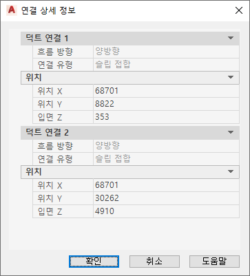 덕트 연결 상세 정보의 예