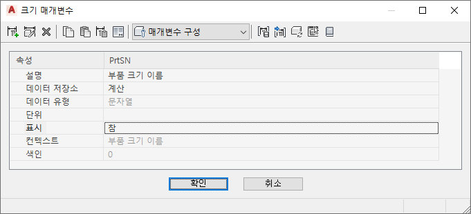 - 부품 크기의 특성 편집이 완료되면 확인을 클릭합니다.