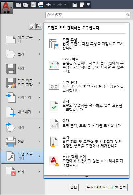 - AutoCAD MEP 2022 toolset 종료