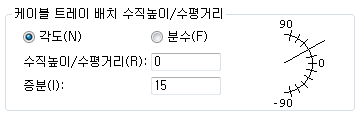 - 케이블 트레이 배치 기본 설정 대화상자의 라우팅 탭에 있는 케이블 트레이 배치 수직높이/수평거리에서 각도 또는 분수를 클릭합니다.