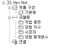 컨텐츠 작성기 환경이 표시됩니다. 기본체에는 부품에 있는 부품 구성 정보나 크기 매개변수와 같은 많은 모델링 기능이 없으므로 모델링 기능의 일부만 사용할 수 있습니다.